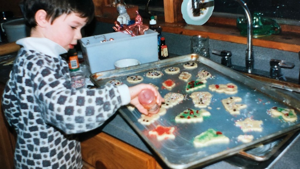 Yes. It was Don’s mother who had made it into an celebratory ritual. But I forget that my mom tried. We had a cookie press and imagined fancy cookies but the thing never worked right. They always fell apart or were misshapen. Too much colored sugar. Never “just right”