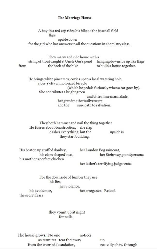 The Marriage House” is a Cool Poem Because Our Marriage is a Cool Thing. Neither of us Ever Knows What Interesting Things One of us Will Unearth