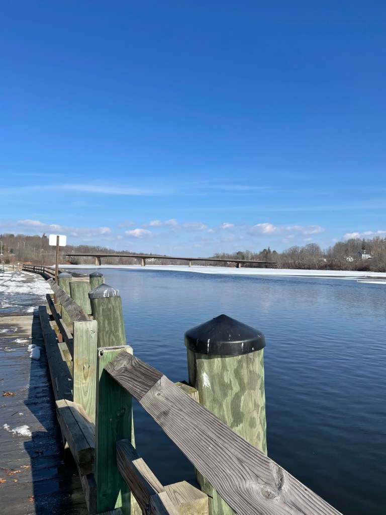 View from the waterfront in Gardiner, Maine. The ice is leaving the Kennebec River, breaking up on its own, pretty early, without even the assistance of the icebreaker we usually get to watch.