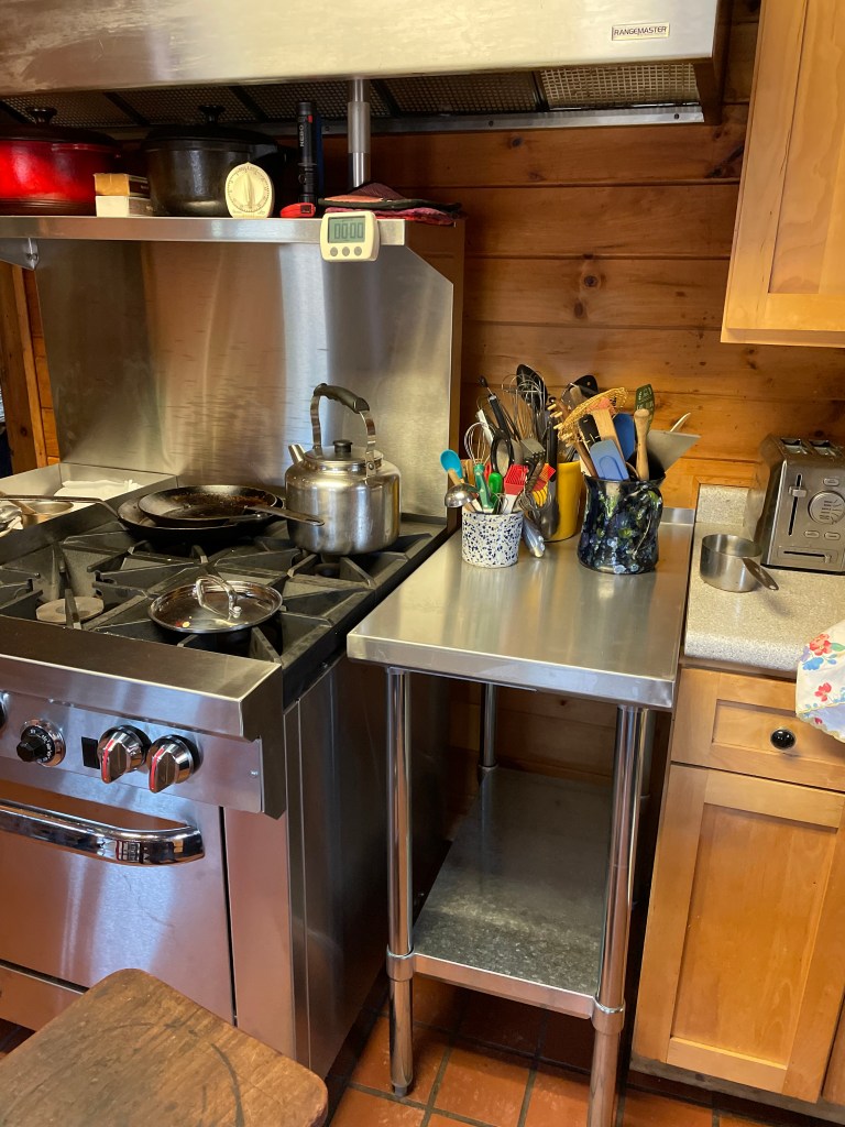 In other news, my new stove and worktable are in place and being put to use. I am enjoying the new orderliness and the shiny, oh-so-functional equipment. We had a friend to dinner and made steaks on the grill, smashed potatoes, and salad with this nice little Moroccan flatbread for dipping into some olive oil with zatar. I tried a great recipe for salmon and scallop chowder and we ate it several times during the week with croutons from the Moroccan bread. Now, I have been elected to make the bunny cake for Easter dinner so I’ll have some baking to do tomorrow. Until next week.